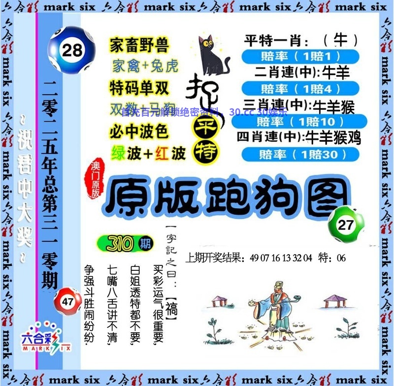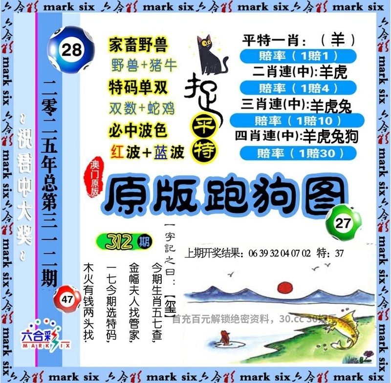 312期:平特【狗】二连【狗羊】三连【狗羊牛】