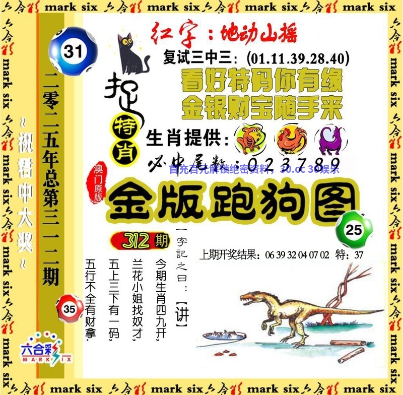 312期解析:红花柳绿四季春,福星高照猪八戒,玄机历在双数找,张牙舞爪出森林。 综合生肖:牛鼠羊马虎龙 |